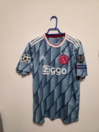 Camiseta de fútbol del Ajax, talla M. Diseño moderno con detalles distintivos. - Logo de Adidas en blanco. - Escudo del Ajax en el pecho. - Patrocinador Ziggo en el frontal. - Parches de la Champions League y Respect en las mangas.