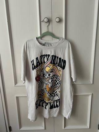 Camiseta blanca con estampado de Bugs Bunny y Lola Bunny de Looney Tunes. Diseño divertido y original. - Estampado frontal con personajes. - Cuello redondo. - Manga corta.