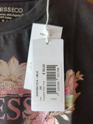 Camiseta negra de Guess con un llamativo estampado floral en el pecho. - Diseño con el logo de Guess. - Estampado floral en tonos rosas y blancos. - Cuello redondo y manga corta. Totalmente nueva sin estrenar, su precio como pone en la etiqueta es de 50€