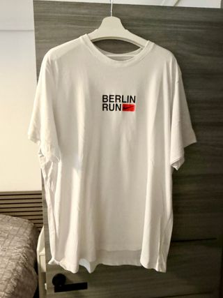 Camiseta blanca de manga corta con el logo de Nike y el texto Berlin Run. - Diseño minimalista. - Cuello redondo.