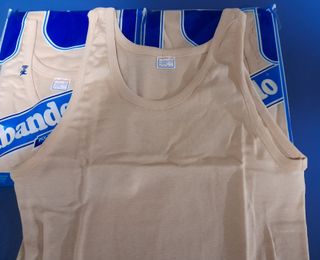 Conjunto de 3 camisetas interior de tirantes, marca Abanderado. - Color beige. - Talla 52. - Tejido suave y cómodo. - Composición: 50% algodón 50% poliester. El precio es por las 3 camisetas.