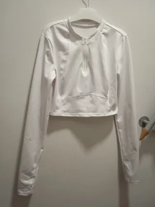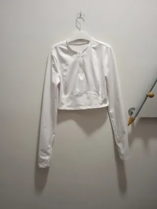 Camiseta deportiva de manga larga para mujer. Diseño moderno y cómodo. - Cuello redondo con cremallera. - Corte cropped. - Tejido técnico.