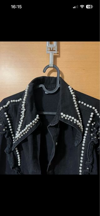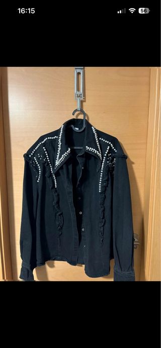 Sobrecamisa vaquera negra con perlas