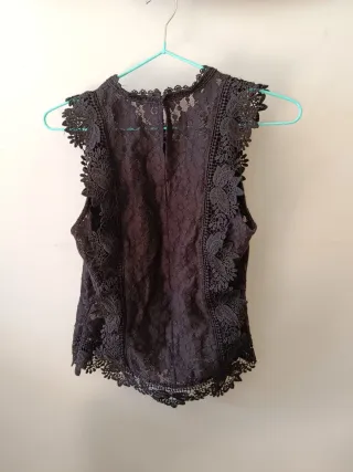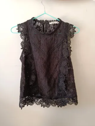 Camisa Stradivarius encaje negra Talla L