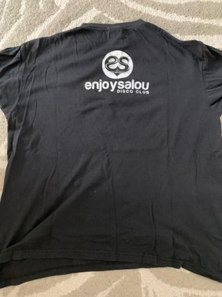 La talla es una L pero equivale más a una M. Camiseta negra con el logo de la discoteca Enjoy y varias frases: - enjoy salou - enjoy night - enjoy party - enjoy music - enjoy crush - enjoy life - enjoy summer - enjoy friends - enjoy beach - enjoy dance
