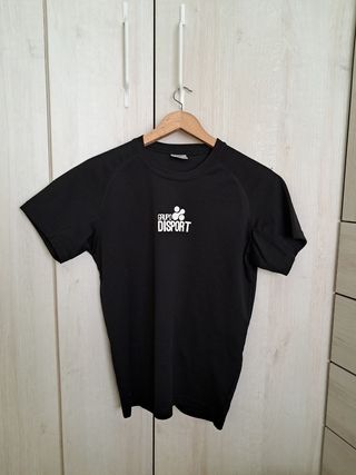 Camiseta negra con el logo de Grupo Disport. - Logo blanco de Grupo Disport en el pecho.