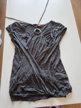 Camiseta de manga corta con detalle de anilla en el cuello. - Diseño cruzado. - Tejido suave y ligero.
