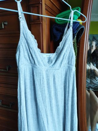 camisón maternidad de woman secret talla s. algodón en canele muy fresco y cómodo. color gris muy clarito