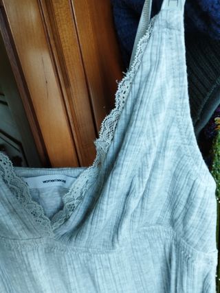 Camisón lencero talla L y sujetador con aros y foam talla 95 Seminuevo, apenas usado un par de ocasiones. Color gris y blanco.