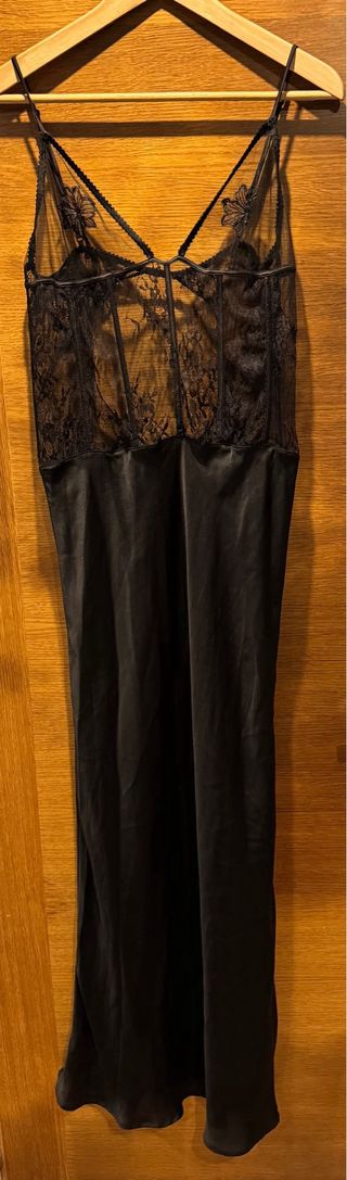 Camisón largo/ vestido largo de tirantes con encaje, transparencias y satén de edición limitada de Zara. Es de la talla L. No tiene etiqueta pero no lo he usado nunca.