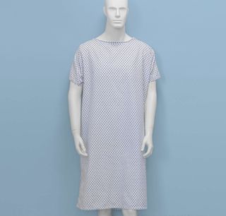 3 camisones hospitalarios con dibujos de copos de nieve. Se cierran por detrás con cordones en el cuello y el costado de manera que la tela monta sobre un lado para que no se abra. Están como nuevos, en perfecto estado. Son talla única, son bastante holgados.
