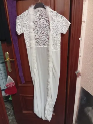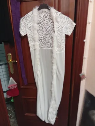Precioso camison de novia, ideal para una noche especial!!! Nunca se ha usado!!! Es de color blanco y tiene un diseño elegante y delicado, está confeccionado en un tejido satinado suave, de un tacto sedoso. Presenta delicados detalles de encaje en el escote y una pequeña abertura lateral. Corte amplio y fluido. Es perfecto para una y muchas mas mañanas...