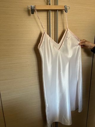 Precioso camisón de color rosa claro. Es ligero y fluido, ideal para dormir o para usar como prenda de estar por casa. - Tiene un diseño sencillo y elegante. - Está hecho de un tejido suave y agradable al tacto. - Incluye detalles de encaje en el escote. Hago envíos o entrego en Alicante, zona pla de la vallonga, no me desplazo