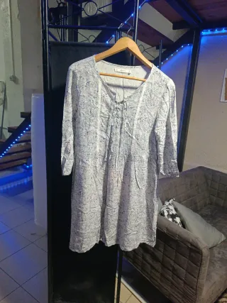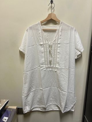 Camisón cómodo y suave, ideal para el embarazo y clínica. - Diseño con escote en pico. - Detalle de botones en la parte superior. - Cintura elástica para un mejor ajuste. - Mangas cortas con detalle. - Muy buen tejido ligero y transpirable. Precio muy bueno, nunca usado y alta calidad. No negociable. Me costó cerca de 60€.