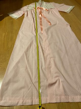 1 Camison con estampado floral rosa. Manga larga. Fruncido en el pecho. Esta nuevo a estrenar. Tela fuerte de buena calidad. Marca punto industrial. Talla L. Mide 53cm entre axilas x 105cm largo.