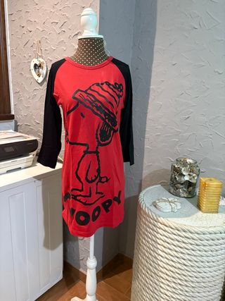 Camisón de manga larga con diseño de Snoopy. - Mangas raglán en contraste. - Estampado frontal de Snoopy con gorro. - Detalle de texto 'Snoopy' en la parte inferior.