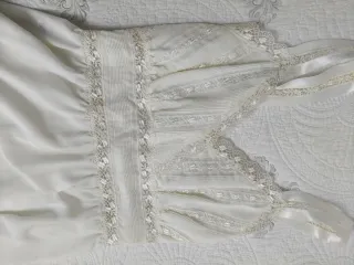 Precioso camisón antiguo con detalles de encaje. - Tejido ligero y suave. - Adornos de encaje en el bajo y el escote. - Tirantes finos.