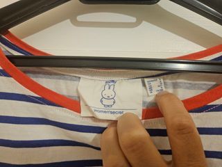 Camisón chulísimo para dormir o estar por casa. Blanco con rayas azules, marca women'secret. Es de la talla XL según etiqueta pero da de sí hasta XXL-44-16. De la costura de la axila izquierda a la costura de la derecha tiene 62cm (124 de contorno de pecho digamos) y desde la axila hasta el borde inferior del camisón son otros 62cm. Es unos 5cm más largo por detrás que por delante (ver fotos). Tiene un estampado de Miffy leyendo con la frase "Don't disturb". Tiene un tacto súper agradable. El precio no es negociable pero podemos ver descuentos por lotes con otros artículos de mi perfil.