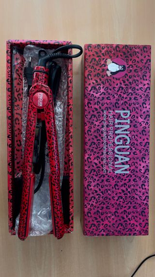 Plancha de pelo con un llamativo diseño de leopardo en rojo y negro. Ideal para estilizar el cabello. - Diseño de leopardo. - Color rojo y negro.