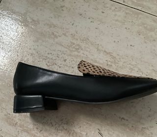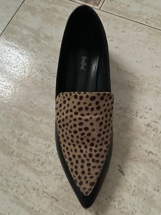 Elegantes zapatos de punta con un diseño moderno. - Combinación de ante con estampado animal print y piel sintética. - Detalle de logo en la plantilla interior.