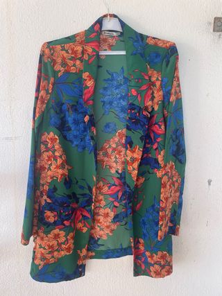 Blazer sin forro con un llamativo estampado floral. - Diseño abierto. - Mangas largas. - Estampado vibrante con flores y hojas.