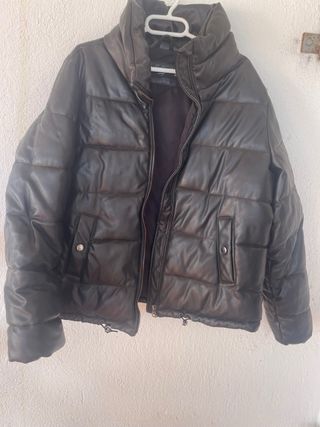 Chaqueta de cuero sintético con un diseño acolchado y cuello alto. - Cierre de cremallera. - Bolsillos laterales con botón. - Puños y bajo ajustables con cordón.