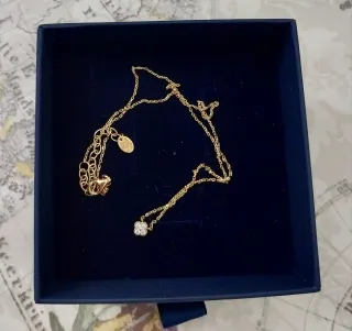 Elegante colgante de la marca Agatha Paris. - Diseño delicado en forma de trébol. - Cadena fina de oro. - Detalle en blanco. Medidas 19 cm de largo Sin estrenar a sido un regalo. Plata de ley con baño de oro y circonita de 4mm.