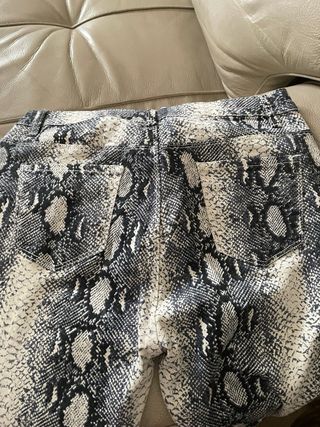 Pantalón con un llamativo estampado de serpiente. - Diseño de cintura alta. - Cierre de botón y cremallera. - Bolsillos delanteros y traseros.