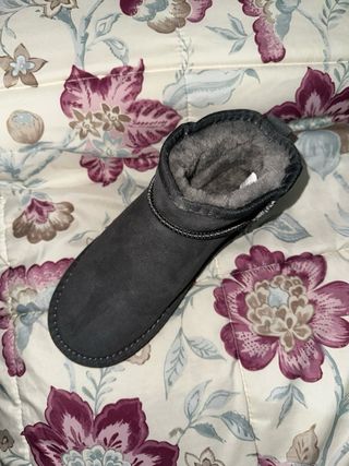 Botas de ante en color gris. Un calzado cómodo y versátil. - Diseño de caña baja. - Costuras decorativas. - Suela de goma.