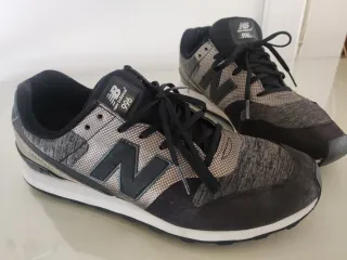 Zapatillas deportivas New Balance modelo 996. - Combinación de colores negro y plateado. - Cierre con cordones.