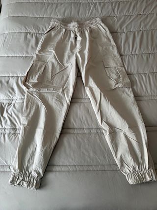 Pantalón estilo cargo en color beige. - Cintura elástica con cordón. - Bolsillos laterales tipo cargo. - Puños ajustados en los tobillos. Usado una sola vez.