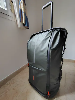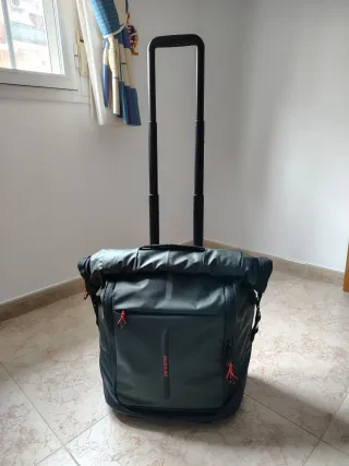 Maleta Samsonite ECODIVER Bolsa de viaje plegable 4 en 1 con ruedas Color: Climbing ivy (verde oliva) Dimensiones: 82 x 40 x 25 cm Volumen 80 Litros Peso: 2,2kg Exterior Categoría Blando Cremalleras: Sí Asas: Asa(s) superior(es) & lateral (es) Tirador: Doble tubo Ruedas: 2 ruedas Bolsillos exteriores 1 bolsillo delantero Expansible Etiqueta para dirección Etiqueta de identificación integrada Detalles reflectantes: Sí Logo Al frente Material impermeable: Sí Asa inferior: Sí Foldable wheels: Sí Interior Compartimiento central Mallas laterales y bolsillo interior. Leves marcas de uso en la zona de ruedas.