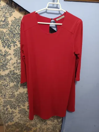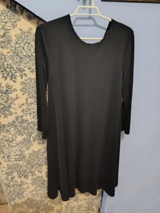 Vestido elegante de manga larga. - Diseño de corte recto. - Escote redondo. - Tejido suave y fluido.