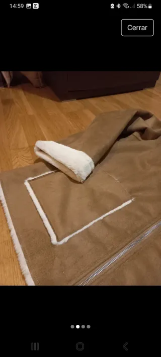 Abrigos Zara Marrón. Talla L. Largo 92, Contorno 53, Largo Manga 60. Con Pello en cuello y puños y borreguillo por dentro, muy calentito. En muy buen estado.