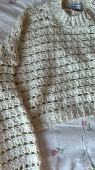Jersey moderno de tejido calado, perfecto para añadir un toque especial a tu look. - Diseño de punto con textura. - Cuello redondo. - Manga larga Se puede habalr del precio.
