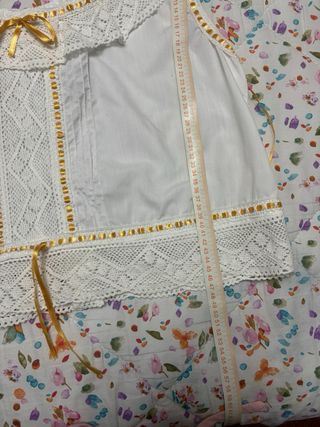 Conjunto de chambra y pololos para fallera. - Detalle de encaje y lazos dorados. - Adornos de pasamanería dorada. -Los pololos se ajustan como una enagua, llevan su cordon/cinta para apretar Para persona que mida 1,70m o mas
