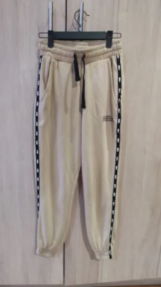 Pantalón de chándal de Pull&Bear para mujer. - Diseño en color beige. - Detalle de cinta lateral con logo. - Cintura elástica con cordón ajustable. - Está como nuevo