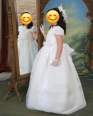 Vestido de comunión blanco, ideal para una ocasión especial. Presenta un diseño elegante y delicado. - Mangas cortas con detalles. - el tejido es muy bonito. - Cinturón decorativo. Regalo cancán que puedes poner o no,