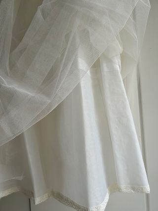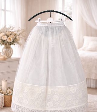 Cancán para traje de comunión de niña. Proporciona volumen y movimiento a la falda. Un volante - Tejido ligero y vaporoso. - Detalle de puntilla en el bajo.