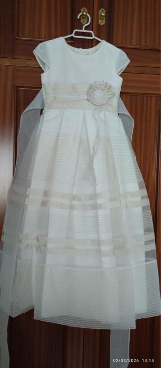Vestido de comunión para niña, de la firma Artesanía de la Torre, 9 años, regalo el cancán.