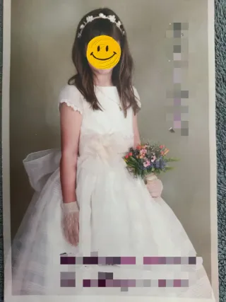 Vestido de comunión para niña, elegante y delicado. - Diseño con encaje y detalles de tul. - Manga corta con puntilla. - Fajín decorativo en la cintura. - Bajo con volantes y puntilla. Solo usado el día de la comunión el durante la ceremonia y fotos Posibilidad de añadir complementos como cancán, chaqueta, flor lateral vestido o corona. Consultame y te enseño fotos y precios