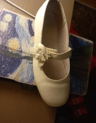Conjunto completo para comunión, incluye vestido, zapatos y cancan. - Vestido blanco con detalles de encaje y bordados. - Zapatos a juego, talla 37 - Cancán para dar volumen al vestido.