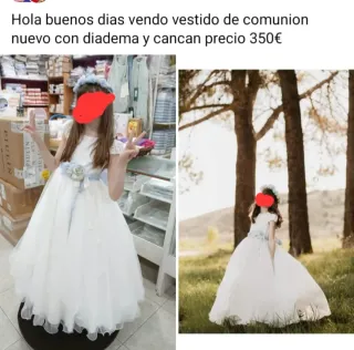 Espectacular vestido de comunión a medida de alta costura de Comuniones Bugatto (Sevilla). Costó 725 € solo el vestido (factura disponible). Se entrega con cancán original de regalo (valorado en 75,90 €). ✨ Utilizado únicamente el día de la comunión. ✨ Estado impecable. ✨ Diseño elegante, atemporal y muy especial. ✨ Encaje artesanal en mangas y espalda. ✨ Tul bordado con caída preciosa. 📏 Medidas: • Largo: 123–124 cm • Contorno cintura: 69–76 cm • Contorno pecho: 75 cm aprox. Se puede vender: • Vestido + cancán: 395€ • Vestido + cancán + complementos (corona y pasador griego): 430€ • Solo Complementos: 70€