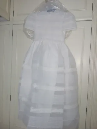 Vestido de comunión elegante y delicado de irganza y jaretas. Talla 9/10 años. Incluye cancan y diadema Se entrega en mano