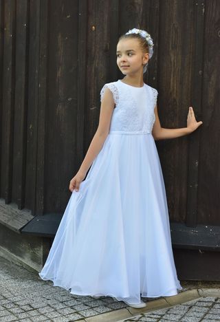 Vestido de comunión de color blanco. Ideal para ceremonias. - Diseño clásico y elegante. - Tejido de alta calidad. - Incluye cancan.