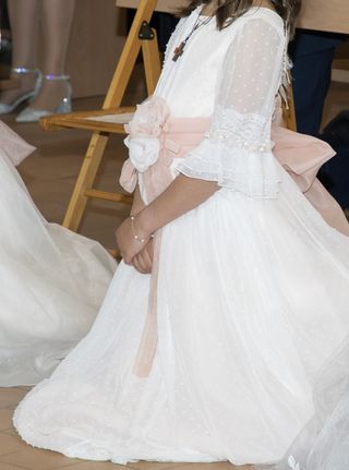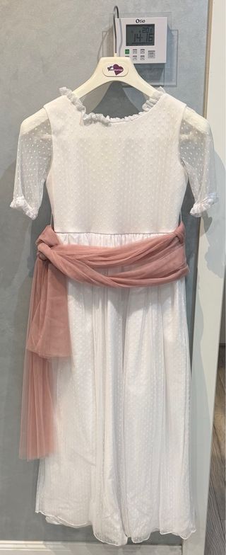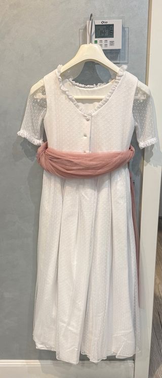 Vestido de comunión con detalles en rosa y blanco. Ideal para una ocasión especial. - Diseño elegante. - Tejido ligero y vaporoso.