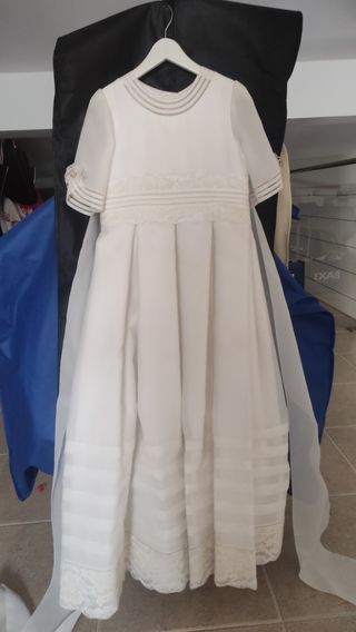 Vestido de 1era comunión para niña.(Talla 1'35 de altura) junto con cancán. Utilizado únicamente en la ceremonia. Precio en tienda 615euros,se vende conjunto completo por 199 euros