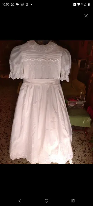 Vestido comunion talla 14 de un solo uso en Perfecto estado de tela de organza Pura , con mangas de vainica echo a mano de esta temporada 2024 incluye cancán de cintura regulable , tocado y zapatos talla 37. (los Zapatos solo costaron 95 eu) ,para más información 649581597