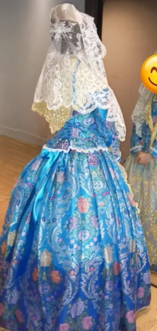 Vestido Fallera Niña 8-9 Años Azul Alt 1,30 - 1,40