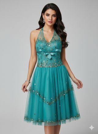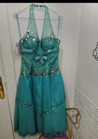 Vestido nuevo color turquesa con pedrería y cancan. Liquidacion de tienda de novias y fiesta